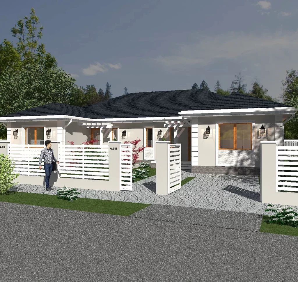 Zwei schöne Wohnungen von jeweils 85 Quadratmeter Wohnfläche und je 309 Quadratmeter Grundstück in Timişoara / Moşnița Nouǎ – Serena 2. Ausgezeichnete Lage für eine junge Familie da Kindergarten, Schulen und Einkaufsmöglichkeiten in der Nähe, Großes Wohnzimmer, Küche, zwei Bäder sowie drei Schlafzimmer.